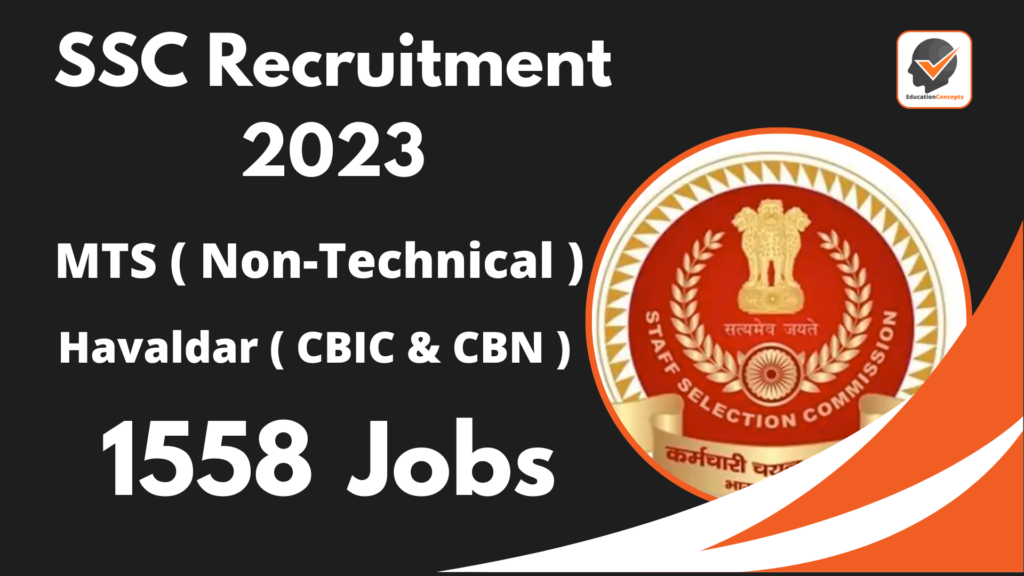 Staff Selection Commission (SSC) released the SSC MTS & Havaldar Recruitment Notification 2023 on the official Website @ssc.nic.in on the 30th June 2023. Candidates can apply for the SSC MTS & Havaldar 30th June 2023 to 21st July 2023. Theare are 1558 Vacnacies for the SSC MTS and Havaldar (CBIC and CBN). The direct link to download the SSC MTS Notification 2023 PDF and the SSC MTS and Havaldar 2023 Online Apply Link is shared in the article below.